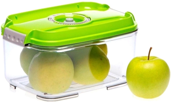 | Информация | Вакуумный контейнер VAC-REC-45 используется совместно с вакуумными упаковщиками, поддерживающими подключение вакуумного шланга, или с ручным насосом для упаковки продуктов в частных домах и квартирах для последующего их хранения. Модель имеет прямоугольную форму, оснащена силиконовым уплотнительным кольцом и индикатором даты (месяц и число) на крышке. Изделие выполнено из тритана, не содержащего бисфенол А, крышка — из ABS-пластика. Особенности: Не впитывает цвета и запахи Можно использовать в микроволновке до 2 минут (без крышки) Можно хранить в морозильной камере Можно мыть в посудомоечной машине Конструкция позволяет устойчиво стоять на вакуумном контейнере VAC-REC-30 |