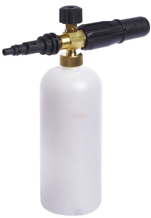 | Информация | - Генерирует мелкозернистую устойчивую пену; - Улучшает качество бесконтактной мойки; - Все части, работающие под давлением, изготовлены из латуни; - Две регулировки – ширины угла распыла и интенсивности добавления моющего раствора; - Ёмкость баллона 1 литр рассчитана на мойку кузова любого легкового автомобиля; |