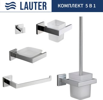 | Комплектация | стакан для зубных щеток, держатель для туалетной бумаги, мыльница, крючок, ершик для унитаза |