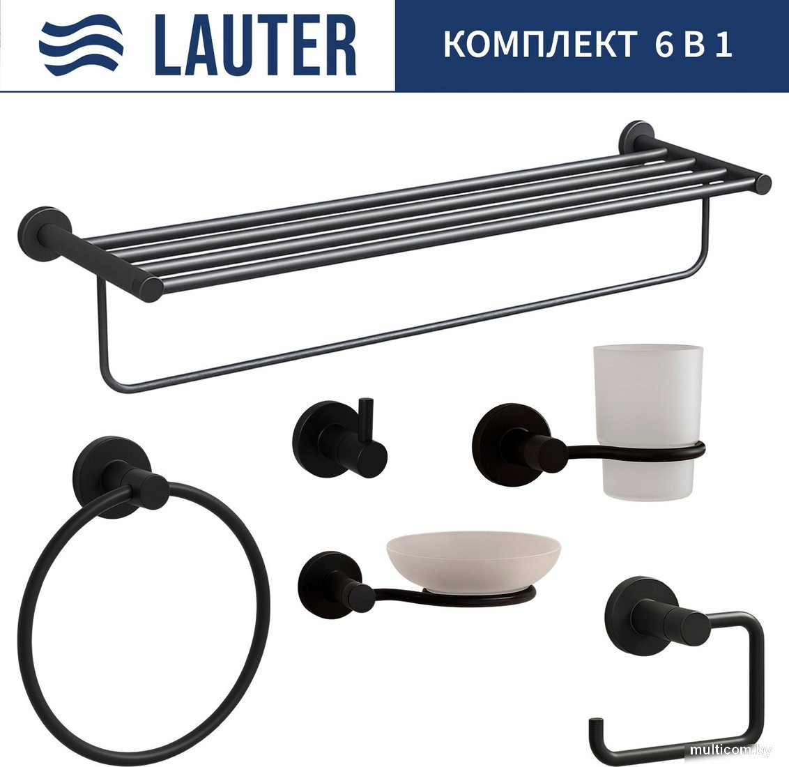 | Комплектация | стакан для зубных щеток, держатель для туалетной бумаги, кольцо для полотенца, мыльница, крючок, держатель для полотенца |