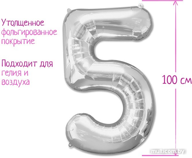 Воздушный шар Страна Карнавалия Цифра 5 1386218 (серебристый)