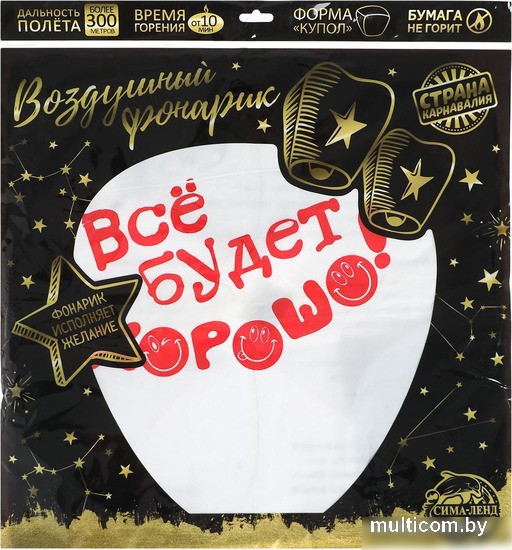 | Информация | Объёмная конструкция сделана из бумаги, пропитанной антигорючей смесью. В нижней части купола на проволоке закреплена свеча-горелка. Она разогревает воздух внутри фонарика, поднимает его вверх и эффектно подсвечивает изнутри. С помощью небесного фонарика вы сможете ярко завершить значимое событие в жизни, любое мероприятие станет запоминающимся с таким праздничным атрибутом. |