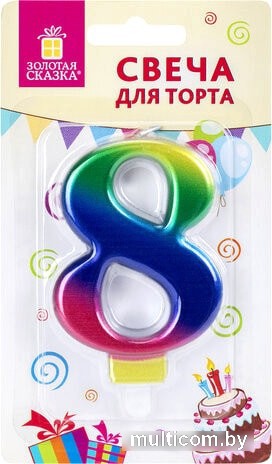 | Информация | Свечи для торта являются неотъемлемым атрибутом праздника. Радужная свеча-цифра станет прекрасным украшением торта и других кондитерских изделий по случаю дня рождения, юбилея и любого другого торжества. Свеча с металлизированным радужным окрасом представляет собой цифру "8". Выполнена из парафина и укомплектована пластиковым держателем для удобства размещения цифры в торте или другом кондитерском изделии. Высота свечи - 9 см. |