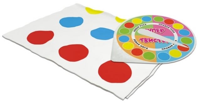 | Информация | Замечательная игра для компании. Она подойдет для игры в семейном кругу или на детском празднике. Психологи активно используют Твситер на занятиях и тренингах для сплочения коллектива, снятия эмоционального напряжения.В игре участникам предстоит с помощью рулетки перемещать свои ладошки и ступни по кружкам на игровом поле. При этом касаться пола другими частями тела нельзя. Чем больше участников в игре, тем более забавная путаница получается. |