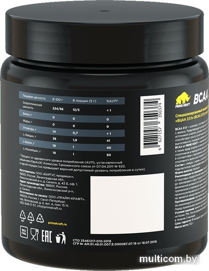 | Состав | Смесь аминокислот (лейцин, валин, изолейцин), лимонная кислота, ароматизатор, натуральный краситель, ацесульфам К, сукралоза. |