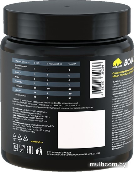 | Информация | Аминокислотный комплекс – смесь незаменимых аминокислот L-лейцина, L-изолейцина и L-валина в соотношении 2:1:1, признанным наиболее эффективным для спортсменов.Преимущества:разнообразные приятные вкусы;быстрорастворимая формула Instant;без сахара.Для чего используется?Комплекс незаменимых аминокислот участвует в восстановлении мышечных волокон после тренировки, увеличивает выносливость и стимулирует обменные процессы в организме.Применяется как для похудения, так и для набора мышечной массы.Перед началом приема рекомендуем проконсультироваться со спортивным диетологом. |