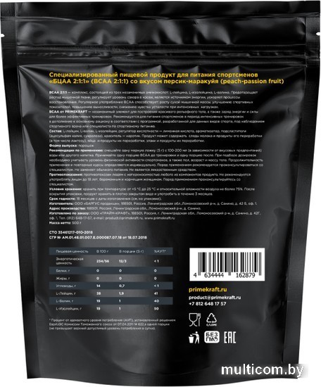 | Состав | Смесь аминокислот (лейцин, валин, изолейцин), лимонная кислота, ароматизатор, натуральный краситель, ацесульфам К, сукралоза. |