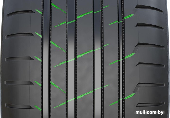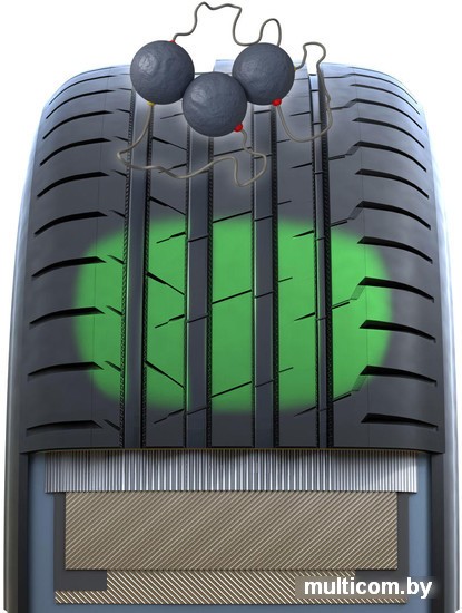 | Информация | Полукруглые углубления на стенках продольных ребер, напоминающие рисунок на мяче для гольфа, обеспечивают дополнительный комфорт при вождении. Инновационный дизайн позволяет воздуху более плавно обтекать рисунок протектора, что снижает уровень шума как внутри автомобиля так и внешний шум, а также уменьшает сопротивление воздуха и охлаждает поверхность шины, благодаря чему, в свою очередь, повышается долговечность шины. |
