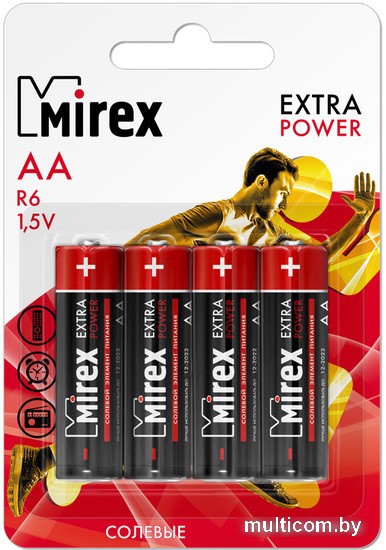 | Информация | «Пальчиковая» (AA) батарейка MIREX EXTRA POWER R6 – современный источник питания мирового стандарта, способный обеспечить бесперебойную работу различным устройствам с низким и средним уровнем потребления энергии: пультам ДУ, радиоприёмникам, таймерам, калькуляторам, настенным часам. Батарея MIREX R6 устойчива к протеканию электролита, благодаря корпусу, который создан с применением специальной технологии «AntileaX». Недорогой источник энергии, простой и надёжный в эксплуатации. Не содержит ртути и кадмия. Элемент питания MIREX R6 с успехом может быть использован для обеспечения работоспособности множества устройств, которые помогают современному человеку в быту и решении повседневных задач. |