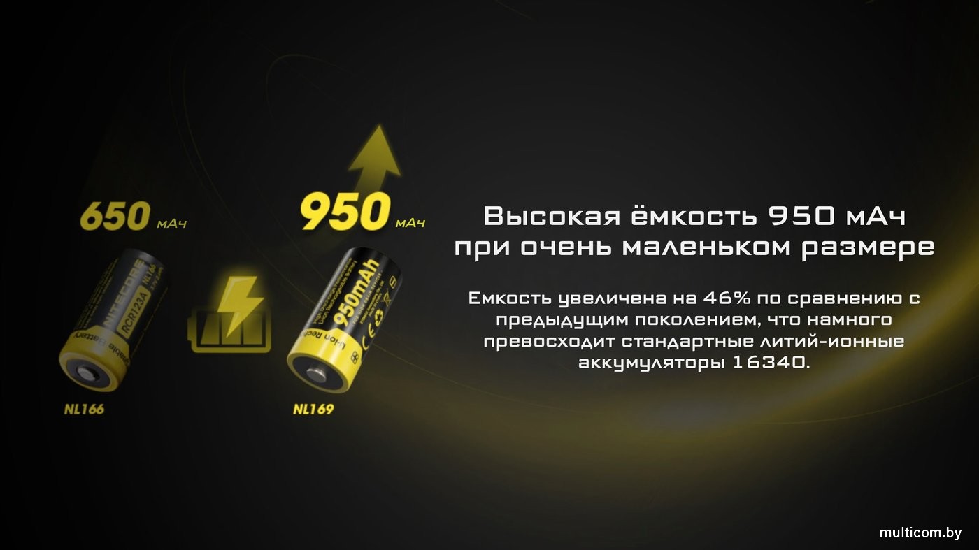 | Информация | ??Текст описания составлен при помощи искусственного интеллекта. - RCR123-16340 - это литий-ионная аккумуляторная батарея, которая станет отличным решением для ваших устройств. С емкостью 950 мАч и напряжением 3,6 В, она обеспечивает надежную работу и длительное время автономной работы. Эта батарея идеально подходит для тепловизоров и приборов ночного видения, что делает её незаменимой для охотников и любителей активного отдыха. - Благодаря встроенной защите от перезаряда и разряда, вы можете быть уверены в безопасности использования. Аккумулятор Nitecore RCR123A/NL169 обеспечивает высокую производительность и может выдерживать более 500 циклов зарядки-разрядки, что делает его экономически выгодным выбором для тех, кто ценит качество и долговечность. - Компактные размеры и легкий вес (всего 20 г) позволяют легко переносить аккумулятор и использовать его в различных устройствах. Он идеально подходит для приборов, работающих на аккумуляторах типоразмера 16340, и может стать отличной заменой стандартным источникам питания. - Не забывайте, что для поддержания оптимальной производительности рекомендуется заряжать аккумулятор каждые 3 месяца, даже если он не используется. Это поможет продлить срок службы вашего устройства и избежать неприятных ситуаций в самый ответственный момент. - Выбирая аккумулятор Nitecore RCR123A/NL169, вы получаете надежный источник питания, который обеспечит вас энергией в любых условиях. |