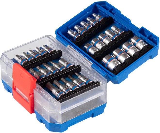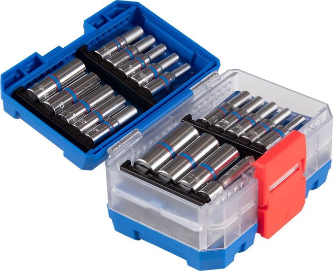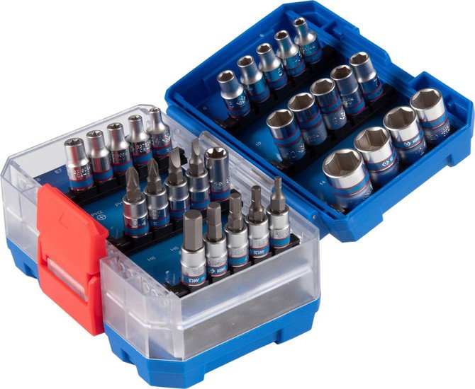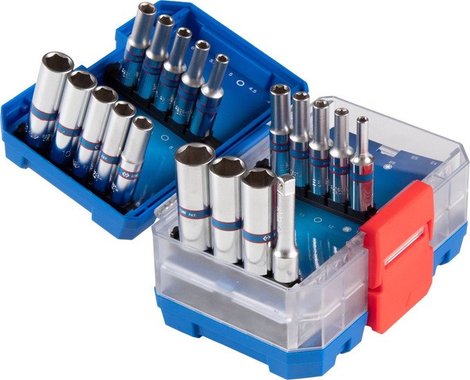 | Комплектация | Головки и принадлежности 1/4": Короткие 6-гранные (2335M) – 4, 4.5, 5, 5.5, 6, 7, 8, 9, 10?2, 11, 12, 13, 14 мм Глубокие 6-гранные (2235M) – 4, 4.5, 5, 5.5, 6, 7, 8, 9, 10, 11, 12, 13, 14 мм Короткие Е-стандарт (2375M) – E4, E5, E6, E7, E8, E10 Глубокие Е-стандарт (2275M) – E4, E5, E6, E7, E8, E10 Удлинитель (2221-02) — 50 мм. Насадки торцевые 1/4". Phillips (2031) — PH1, PH2. Slotted (2032) — SL4.0, SL4.5. Hex (2035) — H3, H4, H5, H6, H8. |