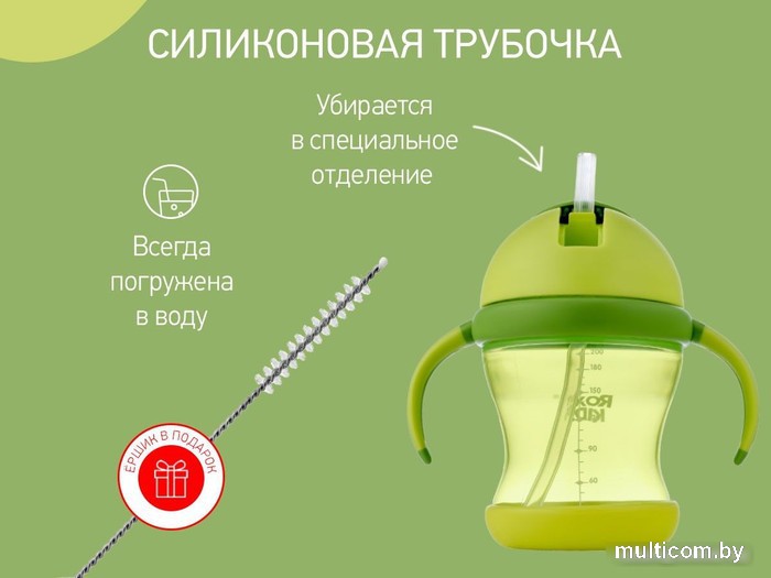 | Информация | Тренировочный поильник-непроливайка поможет малышу научиться пить самостоятельно и привыкнуть к использованию обычной чашки. Изогнутая нижняя часть трубочки всегда погружена в жидкость вне зависимости от положения поильника, поэтому малыш будет оставаться в естественном положении во время питья. Трубочка сделана из мягкого силикона и не повреждает чувствительные десны и зубки ребенка. Защелкивающаяся крышка-слайдер в форме шляпки предотвращает протекание жидкости во время переноски и помогает сохранять трубочку в чистоте. Прочные прорезиненные ручки разработаны специально для малышей и имеют удобную для захвата форму. Изделие подходит для использования дома, на прогулках и в путешествиях. Яркий дизайн привлечет внимание малыша и сделает процесс кормления веселым и беззаботным! Поильник легко разбирается и моется. В комплект входит ершик для трубочки. Можно мыть в посудомоечной машине. Диаметр горлышка 60 мм. |
