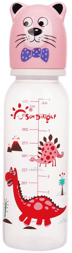 | Информация | Бутылочка для кормления Sun Delight с декоративной крышечкой предназначена для кормления детей от рождения. Модель комплектуется круглой универсальной соской (0-24 мес.), защитной шайбой и колпачком. Изготовлена из высококачественного, нетоксичного, ударостойкого пластика. Соска выполнена из медицинского силикона и имеет воздушный клапан, который снижает вероятность колик, и специальные насечки, предотвращающие слипание соски. Специальная шайба и колпачок не допускают проливания жидкости. Яркий дизайн и декоративная крышечка привлекут внимание малыша и поднимут ему настроение |