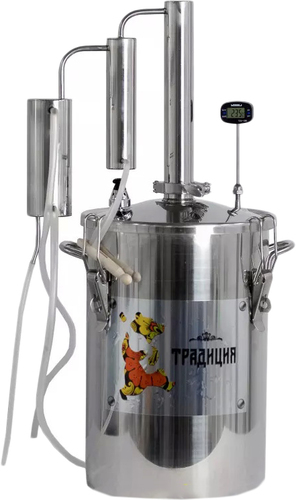 | Информация | Кламповое соединение ускоряет процесс перегонки. Капсульное дно позволяет использовать на индукционных плитах. Съемная крышка куба помогает промывать внутреннюю поверхность бака. Клапан сброса избыточного давления обеспечивает безопасность перегонки. Пищевая нержавеющая сталь. |