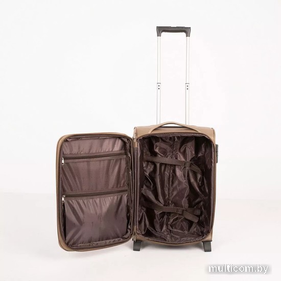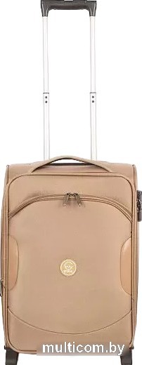 | Информация | Чемодан от торговой марки Grott из прочной практичной ткани 1680Д Оксфорд золотисто-бежевого цвета. Модель на двух широких пластиковых колесах для надежности утопленных в корпус, с выдвижной ручкой с кнопкой и металлическими трубками, ручками-переносками сверху и сбоку, ножками и держателем на дне, ножками-опорами сбоку. Закрывается двойной антивандальной молнией с двумя встречными бегунками; имеется накладной кодовый замок и раздвижка на молнии для увеличения объема. Внутри: фирменная подкладка, в глубоком отделении – фиксирующие ремни, на крышке – два кармана на молнии, в том числе карман-сетка. На лицевой стороне – карман на молнии, декоративные вставки из искусственной кожи; углы укреплены прорезиненной вставкой. На спинке – адресная бирка. |