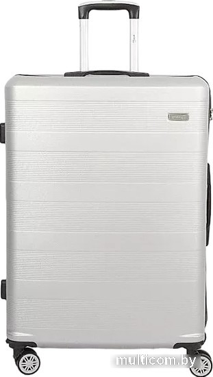 | Информация | Двухцветный чемодан-спиннер от торговой марки Grott из ударопрочного пластика АВС с антивандальной поверхностью; выполнен в сочетании оттенков серебристо-серого цвета с яркой разделяющей окантовкой. Модель на четырех сдвоенных съемных колесах в цвет лицевой стороны, с выдвижной ручкой, ручками сверху и сбоку, пластиковыми ножками-опорами сбоку, утопленным в корпус кодовым замком. Закрывается молнией. Внутри: фирменная подкладка, в одной части - разделитель на круговой молнии, с карманом-сеткой и объемным карманом на резинке, в другой части – перекрестные ремни для фиксации багажа. Чемодан весом 4,2 кг рассчитан на объем 121,5 литров. Модель привлекает внимание благодаря оригинальному дизайну. |