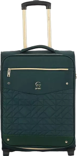 | Информация | Чемодан от торговой марки Grott из прочного текстильного материала зеленого цвета. Модель на двух пластиковых колесах, с выдвижной ручкой с железными трубками, ручкой-переноской сверху. Закрывается молнией золотистого цвета; имеется замок TSA, утопленный в корпус. Внутри: фирменная подкладка плотностью 210 Ден; на крышке – два кармана на молнии, в том числе карман-сетка; в глубоком отделении – ремни для фиксации багажа. На лицевой стороне – карман на молнии; вставка, декорированная мягкой стежкой. Верхние углы креплены пластиковыми накладками для защиты от износа. Чемодан подходит под размер ручной клади. |