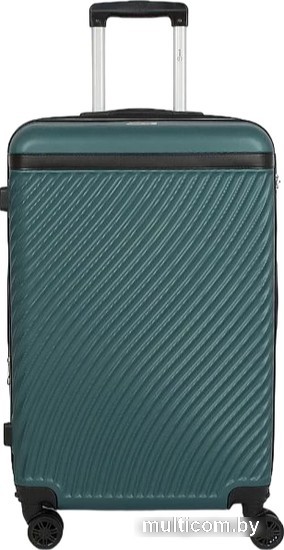 | Информация | Чемодан-спиннер от торговой марки Grott из ударопрочного термостойкого ABS-пластика с антивандальной поверхностью с диагональным рельефным рисунком в зеленом цвете. Модель на четырех съемных сдвоенных пластиковых колесах, с выдвижной ручкой с кнопкой, ручками-переносками сверху и сбоку, пластиковыми ножками-опорами сбоку. Закрывается молнией с двумя встречными бегунками с отверстиями для навесного замка, не входящего в комплект. Имеется кодовый замок. Внутри: фирменная подкладка из полиэстера плотностью 190 Ден; в одной части – клапан-разделитель на молнии, карман-сетка на молнии, в другой – перекрестные ремни для фиксации багажа. Имеется раздвижка на молнии для увеличения объема. |