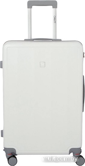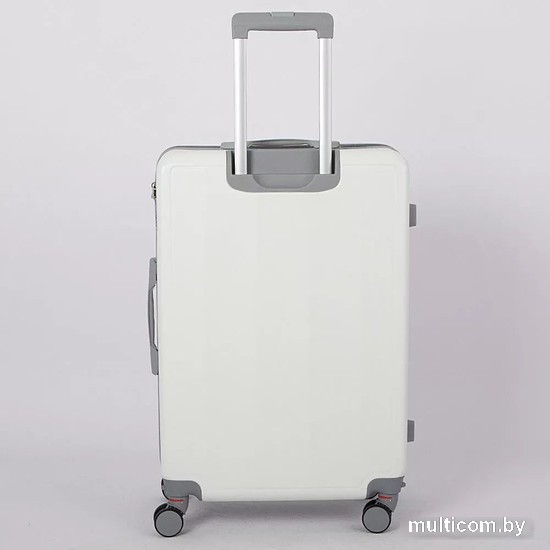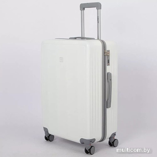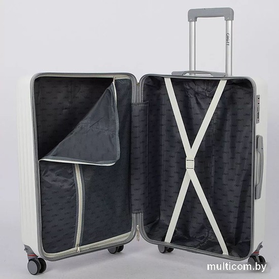 | Информация | Чемодан-спиннер от торговой марки Grott из ударопрочного ABS-пластика в сочетании белого и серого цвета. Модель на четырех сдвоенных съемных пластиковых колесах, с выдвижной железной ручкой, ручками-переносками сверху и сбоку, пластиковыми ножками-опорами сбоку. Закрывается молнией; имеется кодовый замок, утопленный в корпус. Внутри: фирменная подкладка плотностью 210 Ден с поролоновой вставкой; в одной части – клапан-разделитель на молнии, карман-сетка на молнии, в другой части – перекрестные ремни для фиксации багажа. |