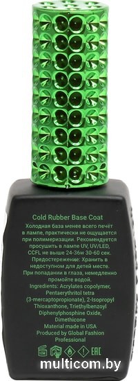 | Информация | COLD RUBBER BASE COAT от Global Fashion - это холодная база, которая абсолютно не вызывают жжения при полимеризации. Рекомендуется просушить в UV/LED/CCFL лампе не выше 24-36W (30-60 секунд). Если ваша лампа выше 36W, во избежание нагревания ногтевой пластины при полимеризации необходимо снизить мощность лампы. В меру густая, вязкая, каучуковая база прекрасно скрывает недостатки ногтевой пластины и подготавливает ее к нанесению цветного покрытия. Благодаря отличным выравнивающим свойствам, помогает создать идеальный блик. Комфортной работе способствует плотная и эластичная кисть. С этой базой покрытие получится качественным, стойким и обеспечит вашему маникюру длительную носку. |