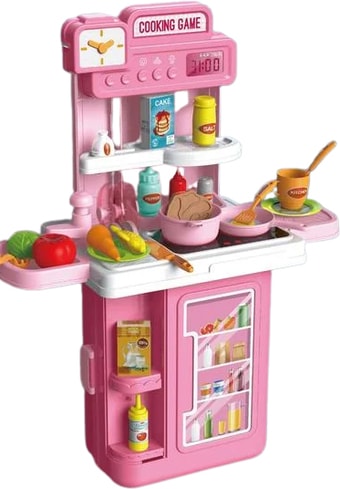 | Информация | Игровой набор «Кухня», который с лёгкостью собирается до полноценной кухни размером 63х49x24 см. У набора есть 2 положения сборки — классическая рабочая поверхность, с которой можно играть стоя, и компактный размер, который необходимо устанавливать на подставку и можно использовать в любом удобном месте. Кроме того, весь набор трансформируется в чемодан с ручкой и колёсиками, что делает его хранение более компактным и обеспечивает простую транспортировку. Главные особенности набора — внушительное количество аксессуаров (41 предмет) и наличие световых и звуковых эффектов у конфорок. |