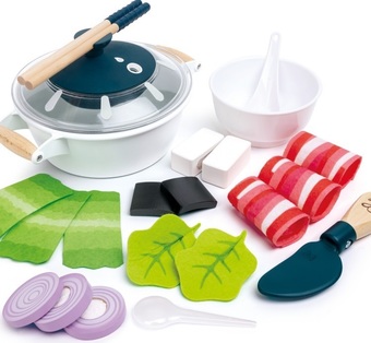 | Информация | Набор для приготовления пищи в кастрюле с реалистичным звуком и эффектом водяного пара Включает в себя одну кастрюлю с крышкой, одну ложку, один нож, два листа салата, одну луковицу, один кусок тофу, три говяжьих рулета, одну пару палочек для еды, три кусочка нарезанной капусты, два кусочка морских водорослей и одну маленькую миску. Нажмите кнопку на крышке, чтобы услышать звуковые эффекты приготовления пищи. Добавьте несколько капель воды. Через 10-15 секунд вы увидите, как поднимается прохладный туман, как настоящий пар. ОБРАТИТЕ ВНИМАНИЕ: несмотря на то, что пар в этой игрушке прохладный и безопасный для прикосновения, мы рекомендуем вам напомнить своим малышам, что настоящий пар опасен и очень горяч. Отличная интерактивная игрушка, позволяющая детям подражать поведению взрослых. Отлично подходит для того, чтобы заинтересовать детей кулинарией и здоровым питанием. Идеально подходит для развития воображения и обмена информацией, а также языковых и социальных навыков. Помогает развивать зрительно-моторную координацию и мелкую моторику. Для детей от 3 лет и старше |