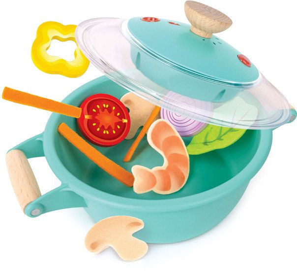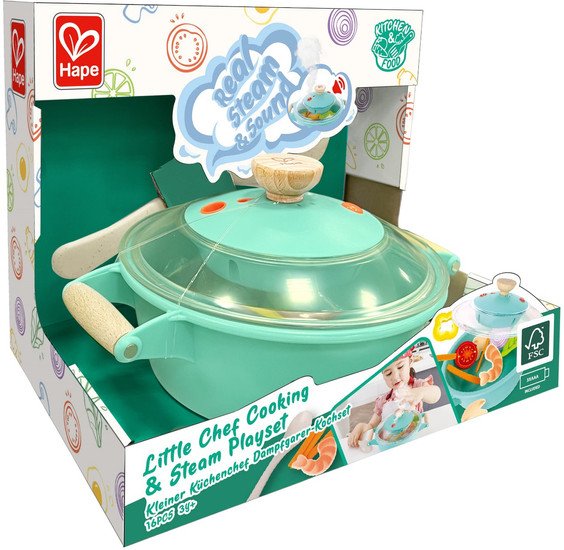 | Информация | ? Набор игрушечной посуды Hape Маленький повар E3187-HP позволяет положить продукты в кастрюлю, перемешать их ложкой, накрыть крышкой и услышать звуки приготовления! ? Добавьте несколько капель воды, и из кастрюли поднимется прохладный туман, похожий на настоящий пар! |
