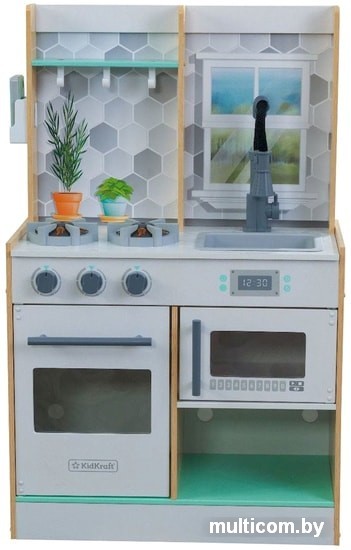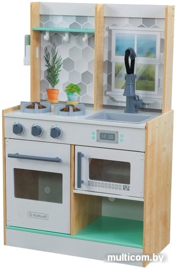 | Информация | На игровой кухне KidKraft Давай готовить ребенок с удовольствием будет проводить время в играх на кулинарную тематику. На полочках можно найти удобное место для хранения игровой кухонной утвари. Мойку можно легко вынуть, а гибкий смеситель направить в нужную сторону. Ребенок будет поворачивать регуляторы, включать конфорки, а в перерыве между готовкой болтать с подружками по телефону. Модель имеет современный дизайн, выполнена в нейтральном сером цвете, поэтому гармонично впишется в игровую зону для девочки. Конструкция кухни – прямоугольная, все модули соединяются в одну линию, поэтому ее удобно располагать вдоль стены. На рабочей поверхности с деревянной текстурой находится варочная панель с 2 конфорками и мойка с гибким смесителем для мытья посуды. Фартук кухни стилизован под серую плитку. Мойку можно легко снять для легкой чистки. Под столешницей установлена микроволновая печь и духовой шкаф с прозрачными окошками для наблюдения за процессом, все дверки можно открыть, а регуляторы повернуть. Под микроволновкой расположена полочка для хранения посуды. Над столешницей расположена полка с крючочками для кухонной утвари, а на торце прикреплен беспроводной телефон, чтобы можно было позвонить подружке или маме и уточнить рецепт. На игровой кухне девочка будет представлять себя хозяйкой и в процессе сюжетно-ролевой игры сможет приобрести навыки готовки и пользования кухонными приборами. Классическая игрушка оснащена интерактивными функциями - при повороте ручки издают характерный щелчок, а конфорки оснащены подсветкой и реалистичными звуками. Проводя время на игрушечной кухне, ребенок сможет развить свою фантазию, моторику рук и пространственное мышление. |