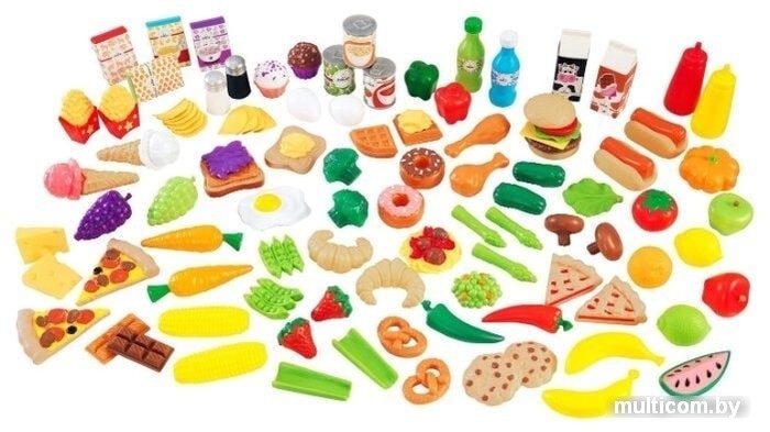 | Информация | Большой набор игрушечной еды состоит из 115 различных продуктов питания. С таким ассортиментом готовить на детской кухне интересно. В комплекте: угощения, выпечка - крендельки, пицца, печенье, рогалики и т.д., фрукты, овощи, 2 куриные ножки, гамбургер, 2 сосиски в тесте и т.д., коробочки с едой, банки "консервы", 2 рожка с мороженым и многое другое. |