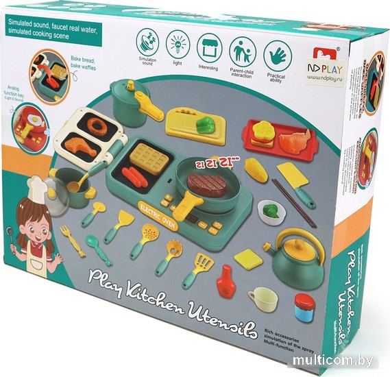 | Информация | ? Детская игрушечная посуда подходит как для девочек, так и для мальчиков, идеальный подарок для маленьких хозяев. ? Этот игровой набор отлично дополнит детскую кухню, придавая процессу готовки реалистичность и оригинальность. ? Функциональная плита сопровождается звуками приготовления пищи, светом конфорки и регулировкой температуры. ? Для работы плиты требуются 3 батарейки (не входят в комплект). ? В комплекте есть посуда и продукты. |