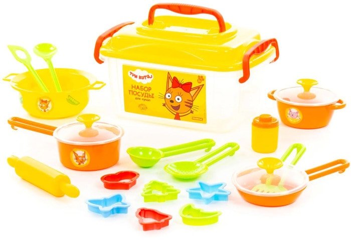 | Информация | Набор посуды для кукол «Три кота» выполнен в цветовой гамме, которая поднимает настроение! Элементы набора украшены наклейками с изображением персонажей мультфильма «Три кота», поэтому играть детской посудой приятно и интересно. Умение готовить и заботиться о чистоте помогут девочке в будущем. Можно устроить чаепитие и научиться сервировать стол. Комплект позволит ребёнку познакомиться с профессией кондитера, так как в наборе много элементов для выпечки. Игра с детской посудой развивает воображение, мелкую моторику рук, память. |