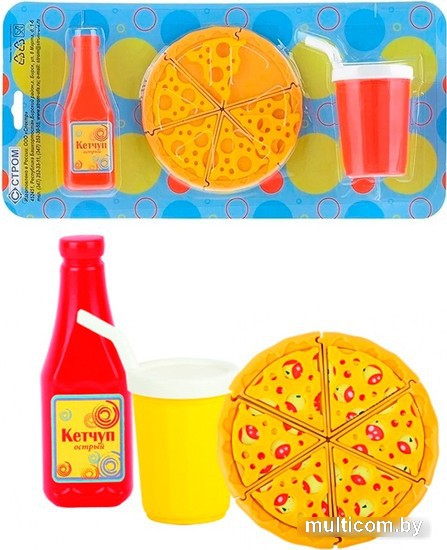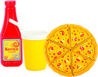 | Посуда, продукты, аксессуары в комплекте | кетчуп, пицца |
