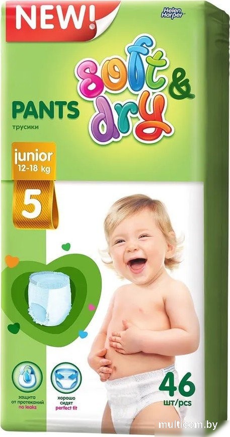 | Информация | -Ключевые характеристики Подгузники-трусики предназначены для детей от 12 до 18 кг; размер 5 (Junior). В упаковке 46 штук. Они подходят для малышей до 4 лет; которые активно развиваются и начинают приучаться к горшку. -Преимущества и отличия Изделия обладают эластичными элементами и надежной защитой от протеканий. Мягкие внутренние и внешние слои обеспечивают комфорт и позволяют коже дышать; предотвращая раздражения. -Практичность Дышащий внешний слой поддерживает оптимальный микроклимат; а анатомическая форма хорошо сидит на ребенке; что важно для активных малышей. Трусики легко надеваются и снимаются; что облегчает процесс приучения к горшку. -Уникальность Использование впитывающих каналов и качественных материалов обеспечивает сухость и комфорт на длительное время. Производство осуществляется в России с контролем качества; что гарантирует надежность и безопасность для ребенка. |