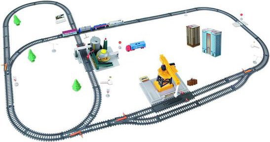 | Информация | Игровой набор «Промышленный мегаполис» — это большая железная дорога со скоростным поездом. Во время путешествия локомотив пройдёт несколько развилок и перекрёсток. Сделайте остановку на станции, примите груз и отправьтесь в очередной рейс! Размеры Поезд: 12,5 ? 3 ? 4 см; Вагон: 10 ? 3 ? 3,5 см; Ширина пути: 3,5 см. Дорога в собранном виде: 145 х 110 см. Ширина между рельсами — 2,1 см. |