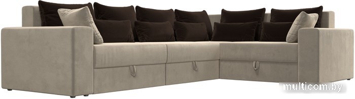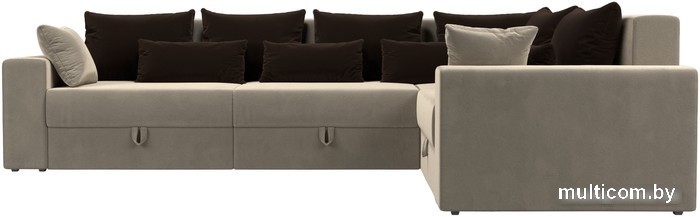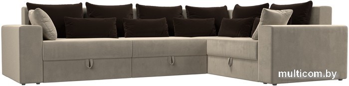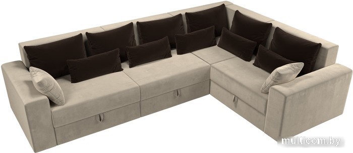 Угловой диван Лига диванов Майами Long 92 правый (микровельвет бежевый/подушки коричневые)