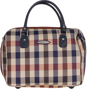 | Информация | Стильная дорожная сумка выполнена из плотного материала. Модель «в клетку», с плотными ручками. Вместительное отделение с текстильной подкладкой, карманом на молнии и небольшими кармашками. Широко раскрывается благодаря молнии по трем сторонам и вытачкам. Дно сумки оснащено пластиковыми «ножками» для защиты от износа. ; Отделение на молнии с двумя бегунками, оснащенными «ушками» для навесного замка, не входящего в комплект. |