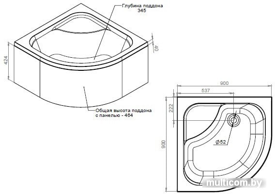 | Информация | Усиленный акриловый поддон на регулируемых по высоте ножках обладает химической инертностью к большинству чистящих средств и дарит безупречный белый цвет и приятные тактильные ощущения. |