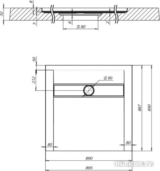 | Диаметр сливного отверстия | 90 мм |