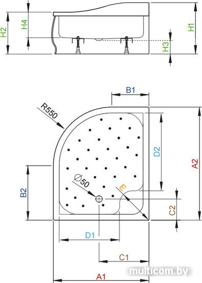 | Информация | Глубокий, акриловый поддон со съемной панелью. Для установки на ножках (в комплекте). Отверстие под сифон 50 мм. Рекомендуемые сифоны: B602R, R135. |