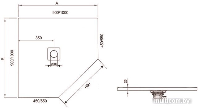 | Диаметр сливного отверстия | 90 мм |