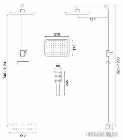 | Комплектация | верхний душ, штанга, ручной душ (лейка), держатель лейки, шланг, смеситель |