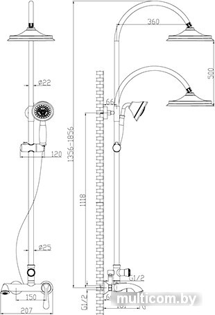 | Диаметр (ширина) верхнего душа | 204 мм |