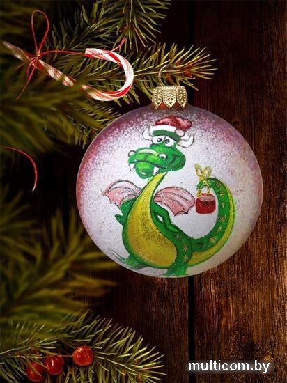 елочная игрушка, шар, цвет белый/зеленый/розовый, диаметр 8 см