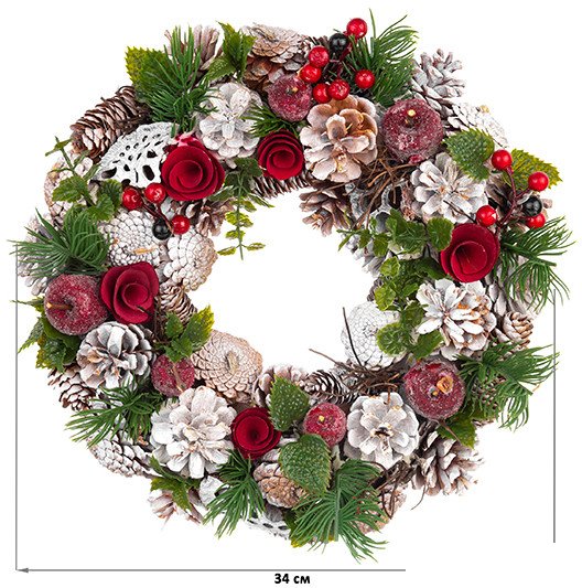 | Информация | ? Украсьте свой дом интерьерным декором, чтобы создать новогоднюю или рождественскую атмосферу во всех деталях! ? Декоративный венок 34?34?8 см сосновые шишки, пушистые еловые ветки, искусственные ягоды и шары — выберите венок, который понравится вам больше всего! ? Веточки, шишки и все содержимое венка закреплено на прочной основе. ? Венок можно разместить на столе или повесить над входной дверью. |