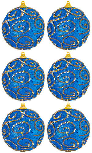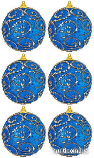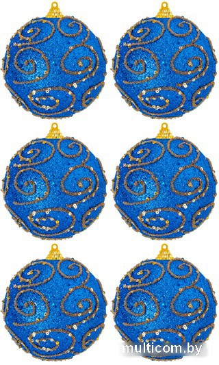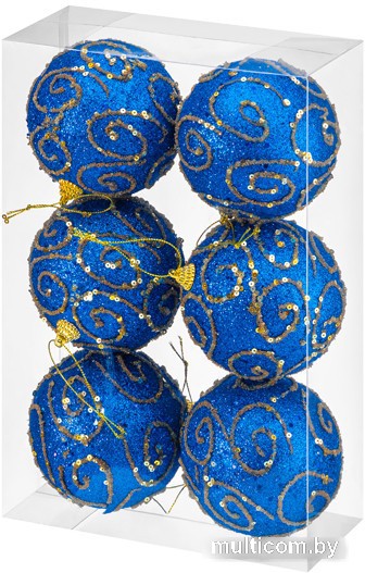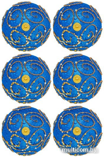елочная игрушка (набор 6 шт), шар, цвет синий, длина 9.5 см, диаметр 9.5 см
