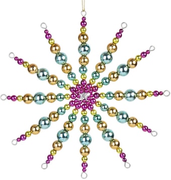 | Информация | Новогоднее украшение из бус станет необычным дополнением декора елки. Внутри елочной игрушки находится металлический каркас, придающий ей форму и обеспечивающий прочность. Новогодняя елочная игрушка выглядит очень традиционно и прекрасно дополнит праздничное хвойное дерево в классическом стиле. Елочное украшение можно также использовать для декора помещения или в качестве небольшого подарка для близких. Бусины будут красиво отражать свет гирлянд, создавая волшебное сияние и праздничное настроение. |