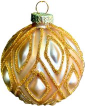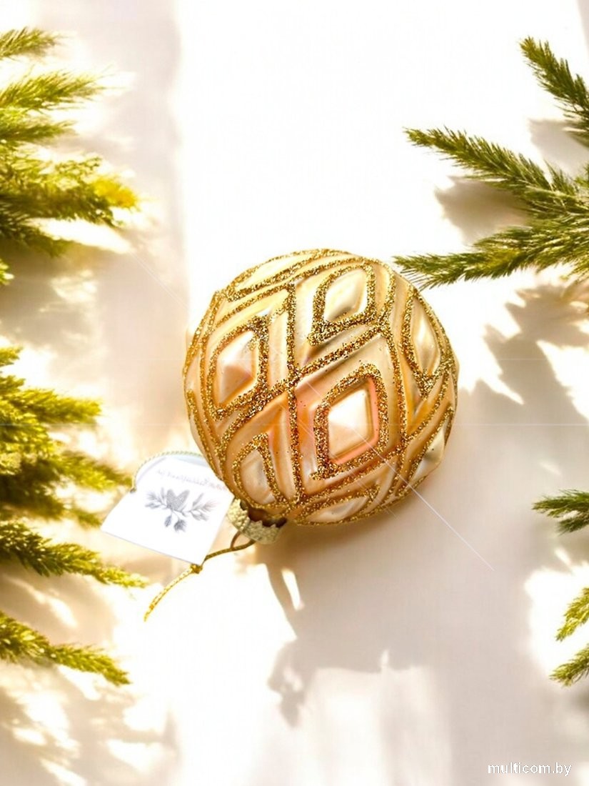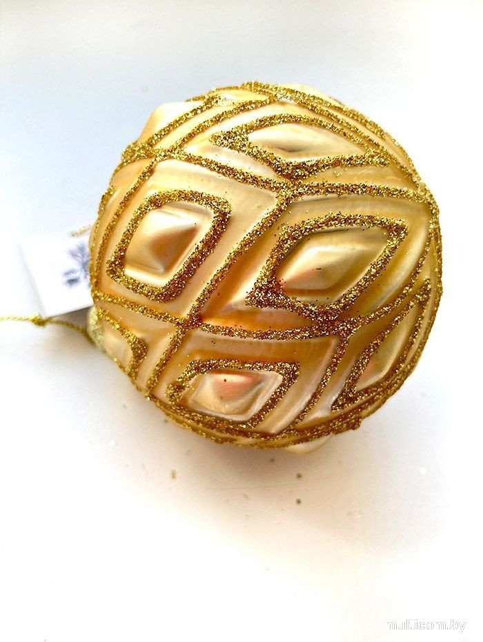 | Информация | - Элегантный шар золотого оттенка с рельефной текстурой и геометрическим узором, украшенным блестками. - Он выглядит невероятно эффектно и станет ярким акцентом на вашей ёлке. - Не упустите возможность добавить этот стильный элемент в праздничное оформление! |