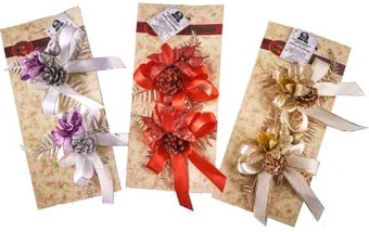 | Информация | Шесть бантов, декорированные шишками, декоративными веточками и прочими новогодними атрибутами на картонной подложке. Будут прекрасным украшением для вашей новогодней елки а, также, их можно использовать в качестве декора для упаковки новогодних подарков. Материал: Пластик, текстиль, дерево (шишка) Форма фигуры: бант, ветка Цвет: красный, серый, золотистый |