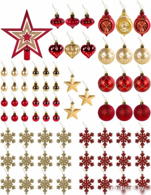 | Информация | - Наборы украшений для новогодней ели помогут легко и стильно оформить вашу елку в едином дизайне. Все элементы аккуратно упакованы в изысканную подарочную коробку. - В комплект входят 70 предметов различных форм: шары, звезды, снежинки и сердца, что позволит создать уникальный новогодний декор. - В наборе вы найдете: - 3 матовых шара золотистого цвета (6 см). - 3 матовых шара красного цвета (6 см). - 3 шара красного цвета с блестками (6 см). - 2 глянцевых шара красного цвета (8 см). - 1 матовый шар золотистого цвета (8 см). - 12 снежинок красного цвета с блестками (6 см). - 12 снежинок золотистого цвета с блестками (6 см). - 3 матовых шара красного цвета (4 см). - 3 матовых украшения в форме пятиконечной звезды золотистого цвета (5 см). - 2 глянцевых украшения в форме сердца красного цвета (4 см). - 1 матовое украшение в форме сердца золотистого цвета (4 см). - 6 глянцевых шаров красного цвета (3 см). - 6 глянцевых шаров золотистого цвета (3 см). - 6 матовых шаров красного цвета (3 см). - 6 матовых шаров золотистого цвета (3 см). - 1 глянцевое украшение на верхушку ели в форме пятиконечной звезды золотисто-красного цвета (15 см). - В комплект также входят 36 ниток из полиэстера для подвешивания шаров золотистого цвета, длиной 30 см каждая. - Декоративные элементы имеют петли для удобного подвешивания. Они идеально подойдут как для украшения елки, так и в качестве новогоднего сувенира. Набор упакован в картонную коробку с пластиковой крышкой и крафтовым наполнителем, а также дополнительно помещен в индивидуальный трехслойный гофрокороб. - С этим набором ваш дом наполнится волшебной атмосферой праздника! |
