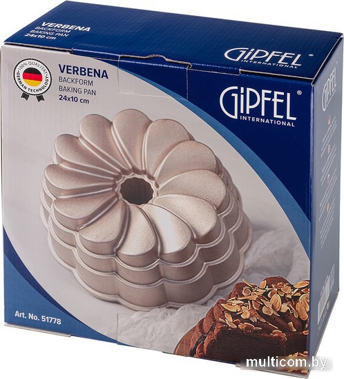 | Информация | ? Форма для выпечки Gipfel Verbena 51778 изготовлена из литого алюминия с двухслойным антипригарным покрытием Ilag Essential. ? Она подойдет для выпечки высоких бисквитов и кексов с отверстием в середине. ? Оригинальная форма придает выпечке красивый рельефный край в виде цветочных лепестков. ? Форма упакована в подарочную коробку. |
